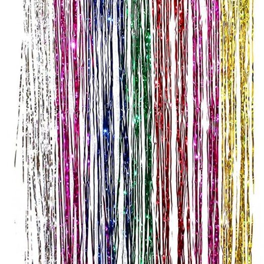 Tytroy Shimmer Door Curtains Fringe Metallic Foil Tinsel Packs 3×8 (1, Rainbow)