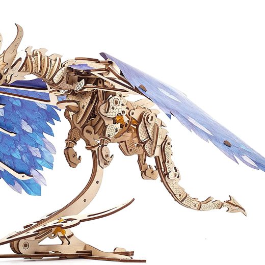 Breathtaking dragon puzzle: Meet the magnificent Windstorm Dragon, the latest mechanical model and 3D wooden puzzle from UGEARS. It’s a fantastic addition to our automaton DIY kits for adults Open design: Like other UGEARS 3D puzzles for adults and kids, the dragon model kit exposes its beating rubber band-powered mechanical heart so you can explore the mysteries of mechanics Dragon craft with a unique feature: The bones of the wings are made of wood, but the feathers are beautifully designed from paper cutouts. Wind the key, and the entire body of this gorgeous mythical reptile will start moving Everything is in the box: No extra tools or glue are needed to assemble UGEARS wood cut puzzles and model building kits. These engineering toys will challenge your wits and skills while keeping you engaged and inspired Memorable gift: Solve the mechanical mystery of an ancient beast and become a Dragon Master with UGEARS model kits for adults and kids. Get your Windstorm Dragon puzzle today