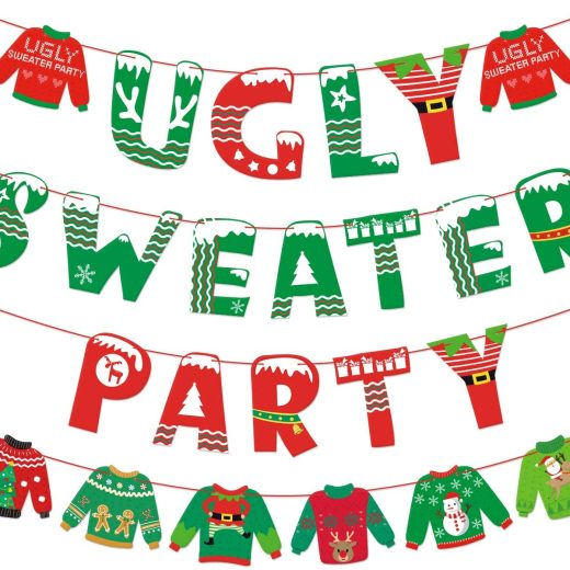 Ugly Sweater Party Banner Tacky Christmas Sweater Photo Props Garland for Wintertime Holiday Christmas Party Decorations Office Xmas Party Supplies