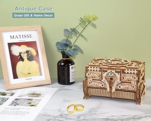 Uguter 3D Wooden Puzzle Antique Jewel Box, Music Box Kit, DIY Home Decoration, Laser-Cut Mechanical Model, Stunning Gifts for Adults and Teens (Antique Case)