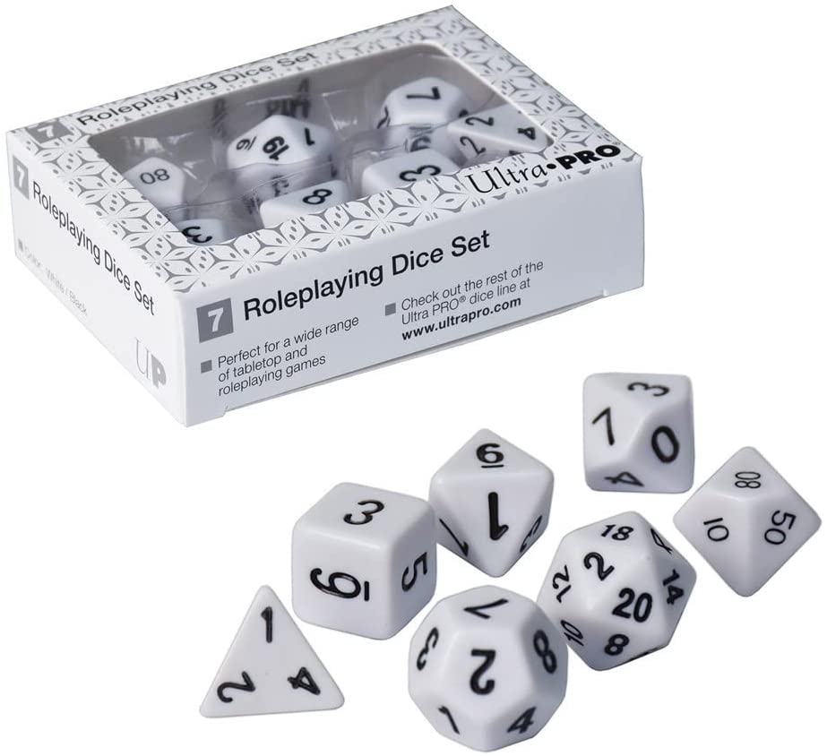 Ultra Pro 7-Set Role Playing Game Polyhedral White Dice with Black Numbering 85091