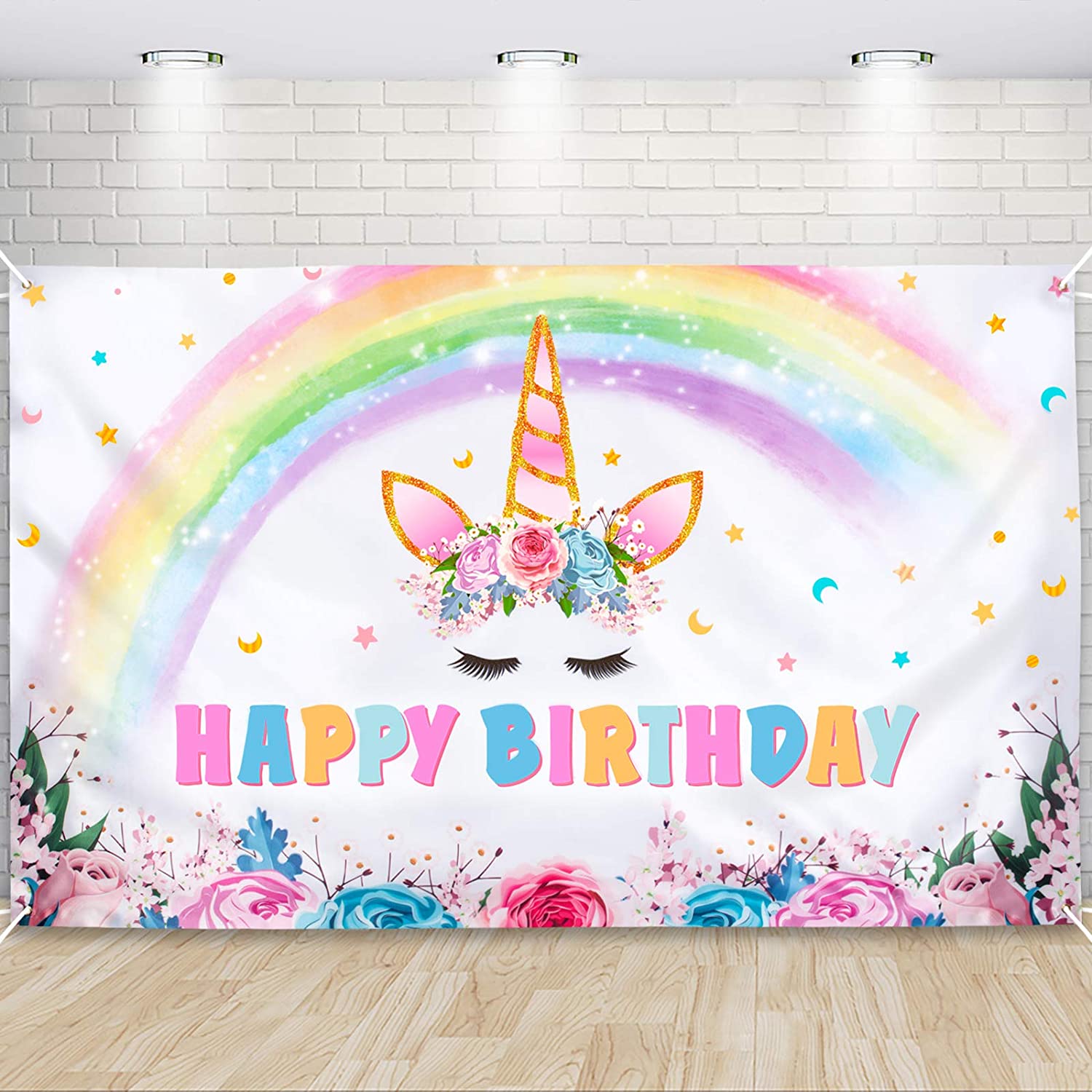 Unicorn Backdrop 73 x 43 – Rainbow Unicorn Party Decorations for Girls Baby Shower Unicorn Theme Birthday Party Supplies Large Photography Background Wall Banner Room Decor