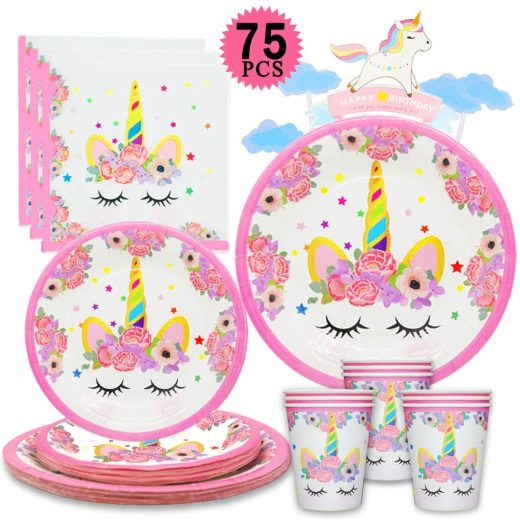 Unicorn Plates and Napkins Cups, Unicorn Birthday Party Supplies Set, Perfect for Kids Birthdays Baby Showers and First Birthday Party Favors(Serves 18)