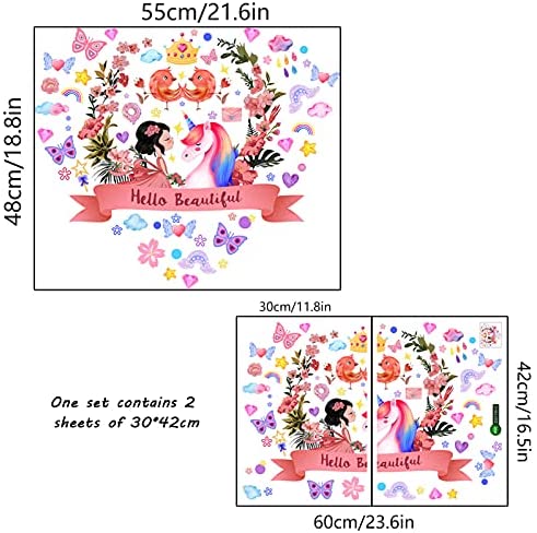 Unicorn Wall Decals, Unicorn Wall Decals for Girls Bedroom, Kids Wall Decals, Rainbow Flower Wall Decals for Girls Bedroom Nursery Living Room Decor Halloween Christmas Gift