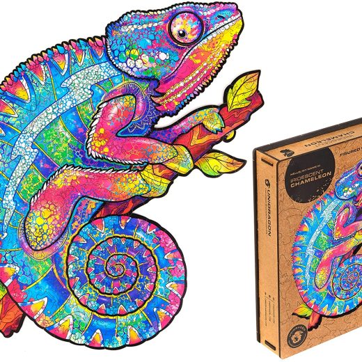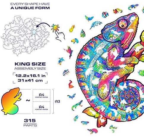 UNIDRAGON Wooden Jigsaw Puzzle, Best Gift for Adults and Kids, Unique Shape Jigsaw Pieces Iridescent Chameleon, 12.2 x 16.1 in (31 x 41 cm) 314 pcs, King Size