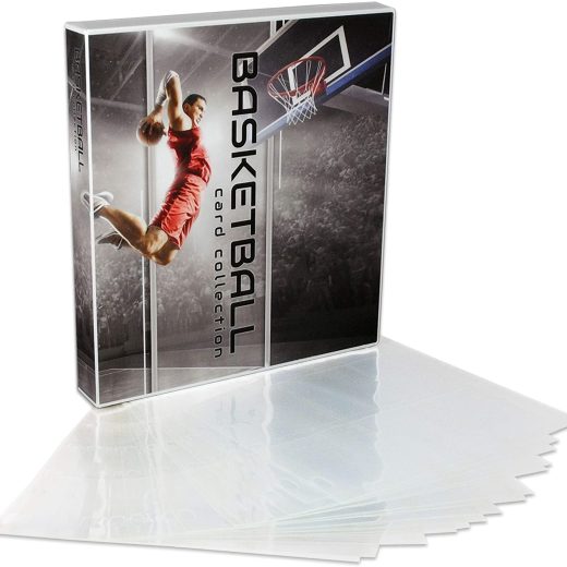 Whether youre looking for a gift for a collector of sports cards or wanting a place to store your own collection, the UniKeep basketball themed card storage binder is a great choice. This kit includes 10 platinum series collector sheet protectors made by EnvyPak. These included sheets will store up to 180 standard sized cards. If your collection continues to grow this binder has room to comfortably hold 500 or more cards (with additional card protector pages). The UniKeep binder features snap-locking poly rings that make adding and removing sheets safe and easy – even for small children. The UniKeep enclosed binder is unique because it is a fully enclosed box. The binder and the archival pages will protect your cards from dirt and dust so their value is never lost. Like all UniKeep Binders, the Card Storage Binder is made and printed in the USA. The included pages are also made in the USA.UniKeep Basketball Themed Card Collection Binder With 10 Platinum Series Trading Card Pages. UniKeep Case Features Integrated Plastic Rings and a Fully Enclosed Case With Locking Latch