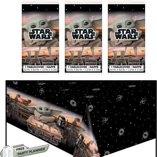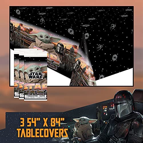 MOVIE THEMED PARTY – These 3 count Star Wars table covers feature The Child – Bab Yoda – and the Mandalorian on a stunning black space background. …