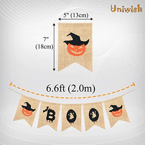 Uniwish Boo Banner Burlap Orange and Black Sign Rustic Happy Halloween Decorations Garland Front Door Outdoor Hanging Décor