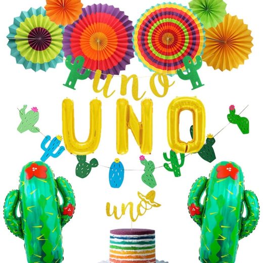 Uno First Party Decorations Fiesta 1st Birthday Party Decorations with Uno Balloon Cake Topper Banner Cactus Balloons