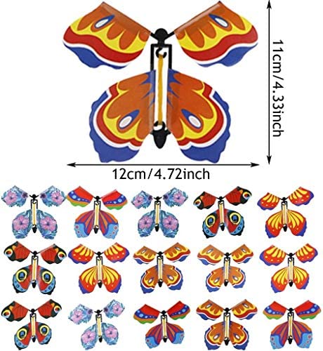 Specifications: Material: Made of card stock, it is small and flexible, rotate the rubber band by clockwise or anticlockwise, the butterfly will freedom flying. Colorful and adorable: The butterfly toys are designed in various colors and cute appearance, look realistic and eye-catching, can draw peoples attention easily, you can play with your family or friends together, enjoy yourselves. Occasion: Suitable for birthday, Christmas, Valentines Day, you can place it in the wedding invitation card, greeting card, Christmas card, letters, books. Package content: The package contains 20 pieces rubber band powered wind up butterfly toys, include 5 different styles, 4 pieces of each style.