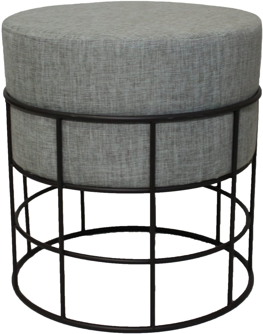 Urban Designs Imported Round Metal Fabric Ottoman Stool-Grey