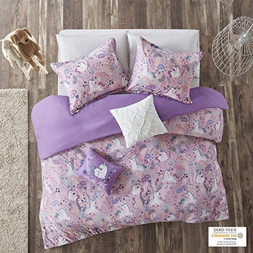 Urban Habitat Kids Duvet Set Vibrant Fun and Playful Unicorn Print All Season Comforter Cover Matching Shams, Decorative Pillow, Children Bedding, Girls Bedroom Décor, Twin/Twin XL, Pink 4 Piece