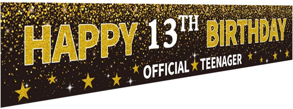 Ushinemi Happy 13th Birthday Banner, Official Teenager Banner, 13 Year Old Birthday Party Decorations Supplies Sign Backdrop, Black, 9.8×1.6Ft