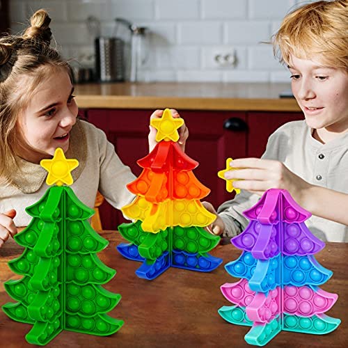 USLA Pop-It Puzzle Tree Fidgets Toy, 3D Jumbo Pop-It Jigsaw Fidgets Toys for Kids Birthday Gifts, Autism ADHD Special Needs Stress Reliever Silicone Toy Christmas Games (3pcs Tree)