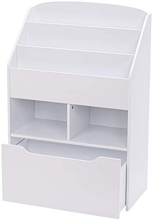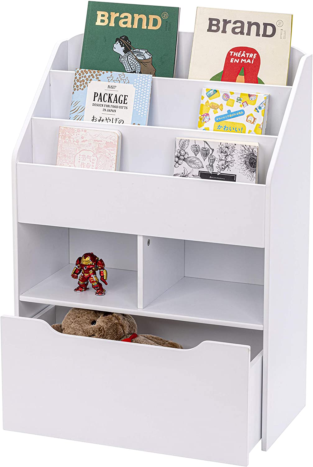 UTEX Kids Bookshelf and Toy Storage Organizer Kids Book Organizer Bookcase Storage for Kids with Rolling Toy Box White