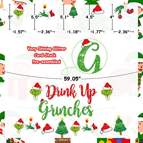 UTOPP Drink Up Grinches Decorations Kit, Red & Green Glittery Drink Up Grinches Banner,Drink Up Grinches Cake Topper Christmas Balloons for Grinch Theme Xmas Party, Xmas Mantel Decor