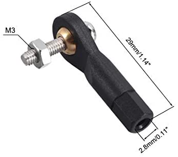 10PCS M3 Lever Steering Linkage Tie Rod End Ball Head End Adapter for RC Helicopter Description:This ball head tie rod end holder is designed for RC Airplane, RC Helicopter, RC robot and other models. there are many kinds of model for choose, please choose the correct model before purchasing.Please note: the bottom hole is not with thread. it is a self-tapping hole. Specification & Features:Center Hole Diameter: 3.0mm/0.12 inchBottom Hole Diameter: 2.8mm/0.11 inchTotal Length : 29mm/1.14 inchFit Rod Thread: M3Suitable for RC Airplane, RC Helicopter, RC robot and other models. Item Contains: 10 Pcs x Ball Head Holder Tie Rod End(with Screws and Nut)