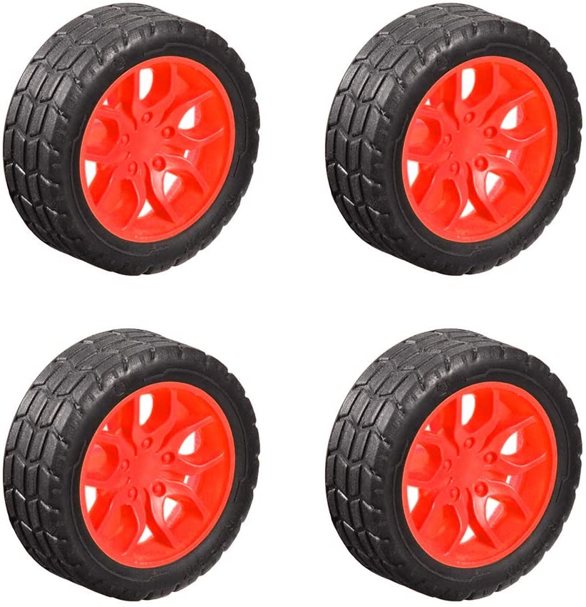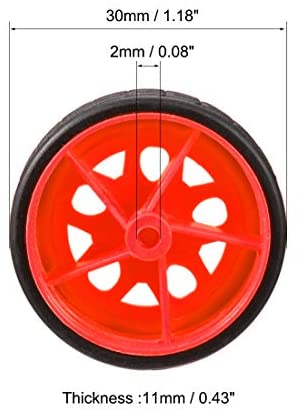 uxcell 30mm Rubber RC Wheel Tires DIY Model Robots 4pcs, Red and Black