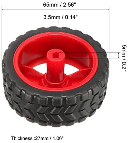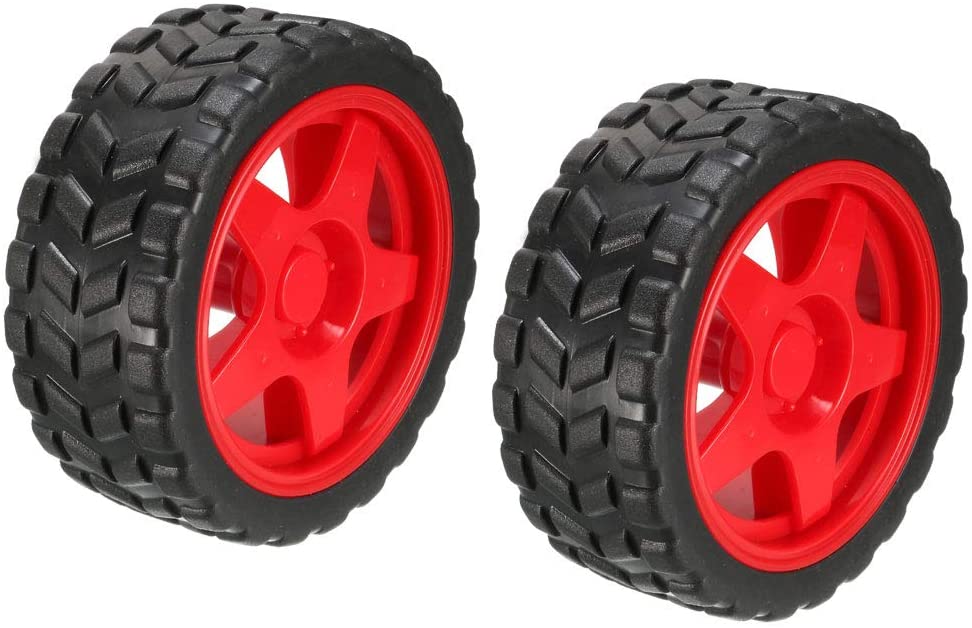uxcell 65mm Rubber RC Wheel Tires DIY Model Robots 2pcs, Red and Black