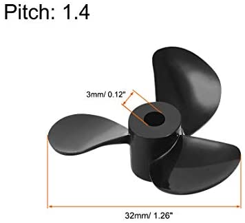 uxcell RC Boat CCW Propeller 3mm Shaft 3 Vanes 32mm 1.4 P Fan Shape Pastic Black Rotating Propeller Props for RC Boat 2pcs