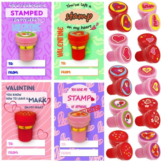 Valentines Day Gifts Cards with Valentine Stampers Toy, 20 Pack Valentines Greeting Cards for Kids, Valentine School Classroom Prize Party Favor Toys, Valentines Gift Exchange