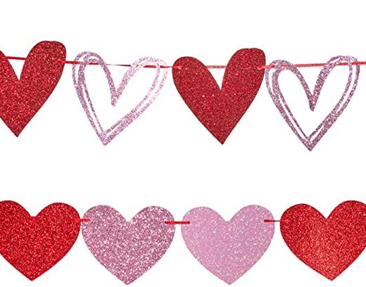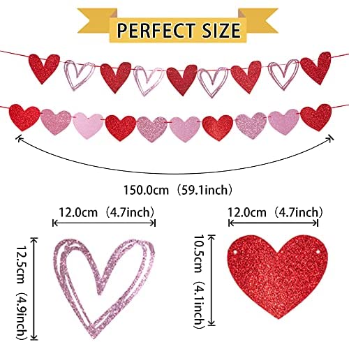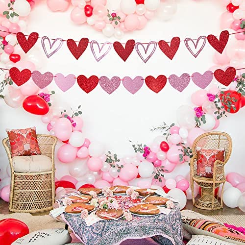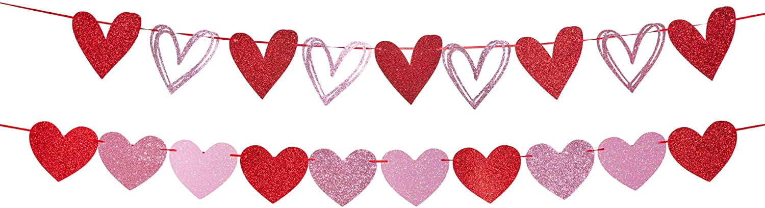 Valentines Day Love Heart Banner Red and Pink Glitter Sweet Love Valentines Love Heart Garland Banner for Valentines Day Wedding Anniversary Bridal Shower Birthday Party Sign Decorations Supplies