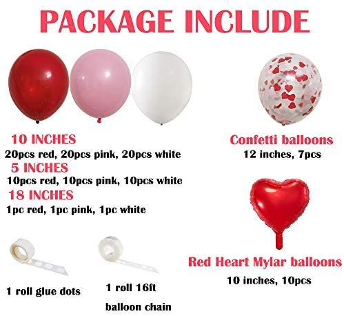Valentines Day Party Balloons Arch and Garland, 110 PCS Valentines Color Red Pink White Balloons 18