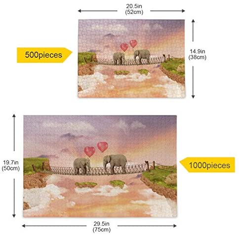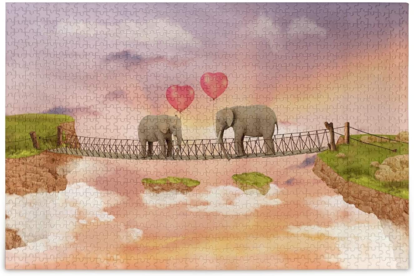 Valentines Elephant Jigsaw Puzzle 1000 Pieces for Adults Teens, DIY Wall Art Intellectual Decompressing Fun Game