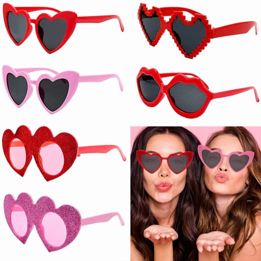 Valentines Heart Sunglasses Set, 6 Pack Valentines Day Fancy Eyeglasses, Cute Party Sunglasses for Valentine Party Supplies Photo Props Costume Accessory