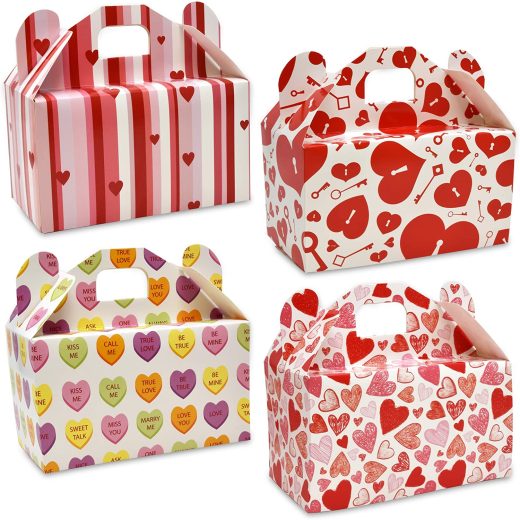 Valentineu2019s Day Treat Boxes 48 Pack Cardboard Hearts Goody Bag Cookie Holder Classroom Crafts Supplies Party Favors 4 Designs by Gift Boutique Measures: 6.2 x 3.5 x 3.5 Inches