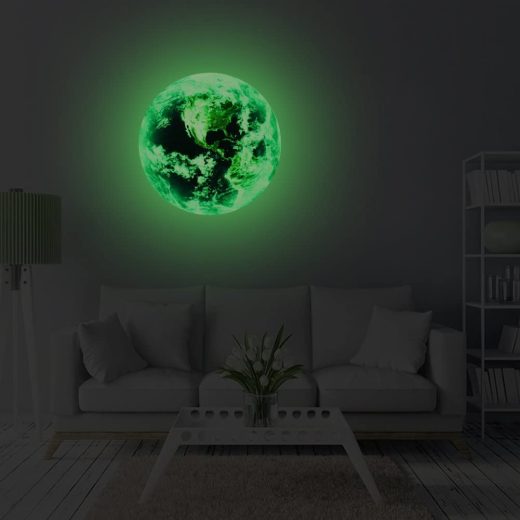 VancyTop 3D Luminous Earth Pattern Self-Adhesive DIY Removable Wall Sticker for Kids Room Nursery Living Room Home Decoraions,Blue Light Color