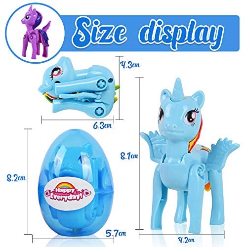 High Quality: The Easter eggs toys is made of high quality ABS plastic, which is no smell and non-toxic please enjoy playing.All of joints can be rotated 360°, no need to worry about being broken by kids, its will be perfect Easter toys for girls. Easter Basket Stuffers: Let our Easter be full of surprises. Easter baskets for kids includes four different color eggs, each with unique unicorn toys, which is about 3.3 tall X 2.6 wide, children will love to find surprises inside Easter eggs. Fun to Play: The unicorn toys is easy to assemble and play, they are so cute that kids who cannot resist! With its colorful design, its also a perfect decoration gifts for kids room and best gifts for 3-8 year old girls who love unicorn. Ideal Kids Toys: Deformed unicorn toy can be manipulated at will and stimulates kids’ imagination. Kids can play alone or with family or friends to increase parent-child interaction and kids social skill, which is a good choose as toys for kids age 3+. Kids Gifts: Suit for Easter basket for boys girls, Easter egg hunting games, girls toys, Easter basket stuffers for toddler, Easter gifts for kids, gift for back to school, birthday gifts, Christmas gifts, stocking stuffers for girls, gifts for classroom prizes.