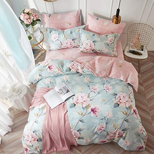 ? ?ultra Soft Cotton?100% Cotton With 200 Thread Count, Ultra Comfy, Lightweight, Breathable, Durable, Give You a Good Sleeping Experience for All Season. ? ?Queen Size for US Full/Queen Bed? No comforter in sets,3 Pieces bedding collections include one duvet cover and two pillowcases. Queen size duvet cover measure 90 by 90 inch; matching two pillowcases measure 20 by 26 inch. Please search ASIN B07G5668FT in search box, you can find the matching fitted sheet. ? ?Vintage Flower Pattern?Chic Blue Pink Floral Leaves printed design Duvet Cover Sets (No Comforter) bring much fun to home for all seasons. Unique design makes this girls botanical duvet cover be a like delicate artwork, create a charming and fashionable appearance, bring you -new bedroom feeling. Perfect Bedroom Decoration?The modern blossom flowers duvet cover sets is great home decor to decorate bedroom, guest room and princess room. ? ?Gift Idea?slip this pink blue duvet covers sets over your comforter, quilt or duvet or blanket insert instead of a top sheet, create a special bedroom and home environment. Designed with excellence in mind, it is a good gift idea for boy, girl, teen, woman, man, amilies and friends on Valentine day, birthday, wedding, Anniversaries, Mothers Day, Fathers Day, Christmas, Thanksgiving Day ? ?Convenient Design?Ties in each corner inside the duvet cover make it easy to secure your comforter and prevent it from bunching or moving; Hidden zipper closure, make it easy and efficient to put this duvet cover on your comforter,seamless look. Great woven craftsmanship make your duvet cover set durable for lasting longer to use. ? ?Care instruction?Machine wash cold, separately with gentle cycle. Do not bleach. Tumble dry with gentle cycle and no heat. 100% Satisfaction Guarantee? Welcome to the VClife Bedding Collections store. Strive to provide good customer service, we offer One Year satisfaction service. If you have any questions, please feel free to contact us, and our customer service staff will reply you within 24 hours.