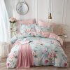 VClife Cotton Queen Bedding Duvet Cover Sets, Full Girls Blue Pink Flower Vintage Pattern Queen Comforter Quilt Cover Sets Zipper Closure Lightweight Soft Floral Bedding Sets (Queen, 3 Pcs Bed Set)
