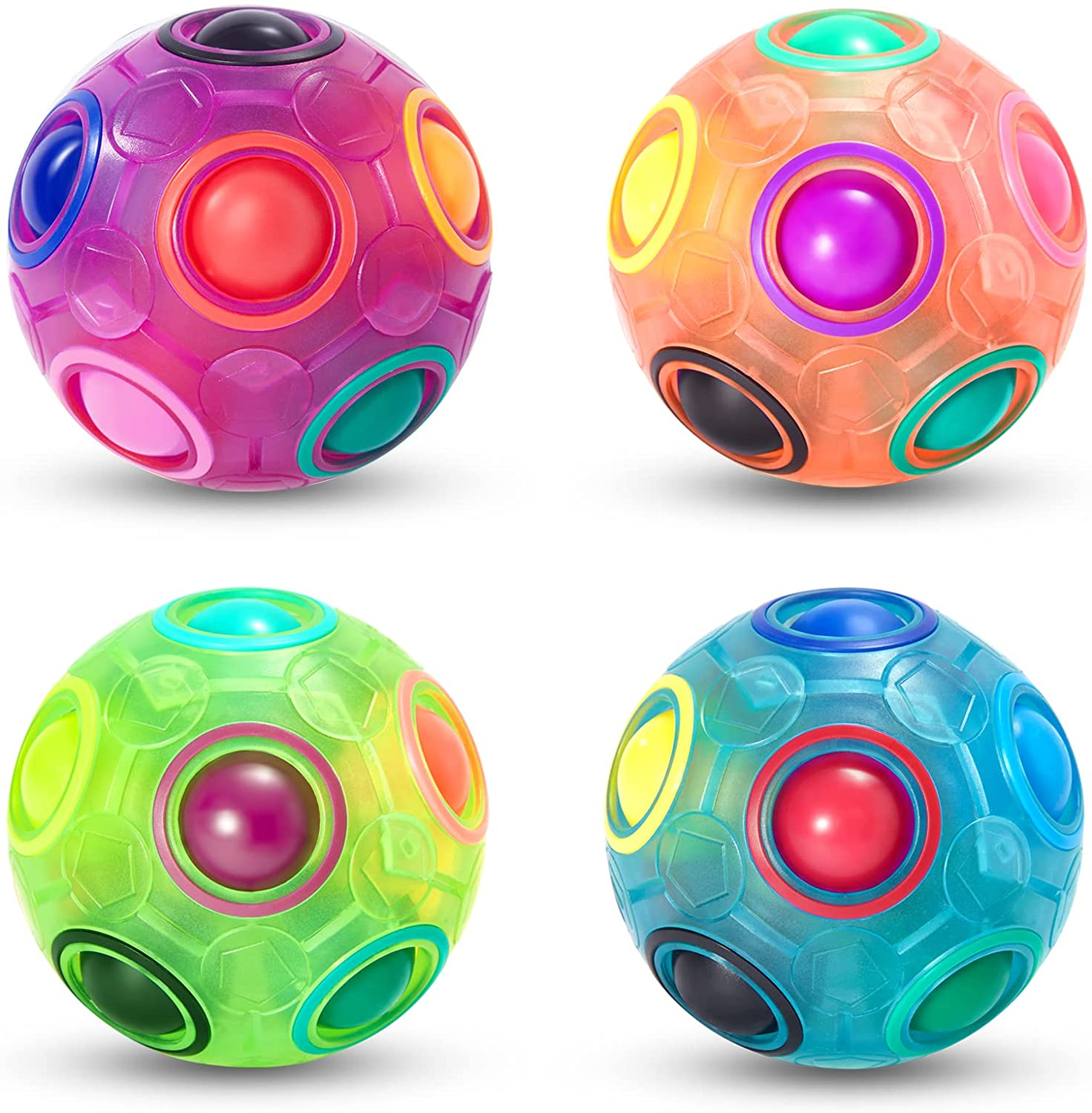 Vdealen Magic Rainbow Puzzle Ball, Fidget Ball Puzzle Game Fun Stress Reliever Magic Ball Brain Teaser Fidget Toys for Children Teens & Adults-4 Pack