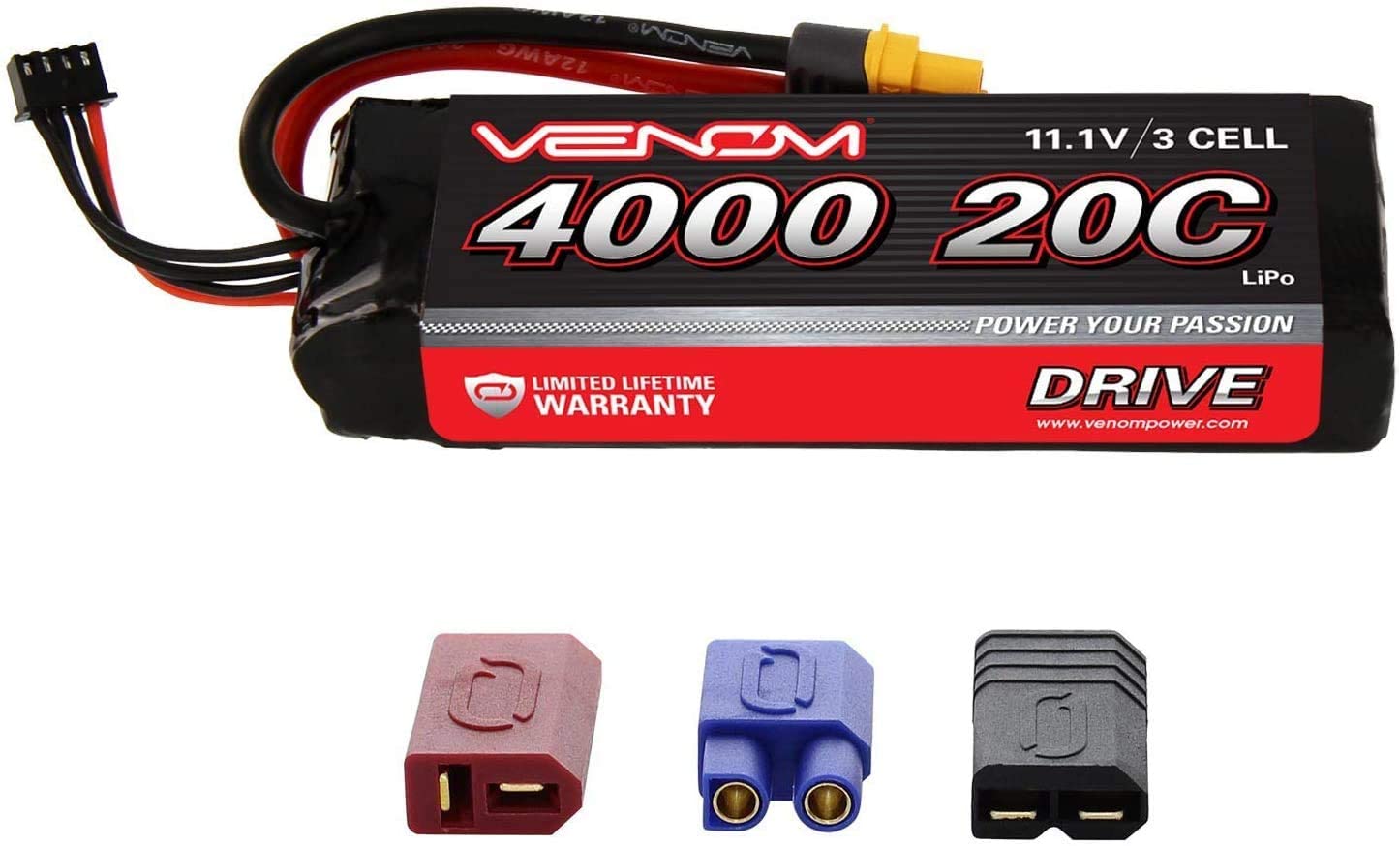 Venom 20C 3S 4000mAh 11.1V LiPo Battery with Universal Plug (Compatible for EC3/Deans/Tamiya)
