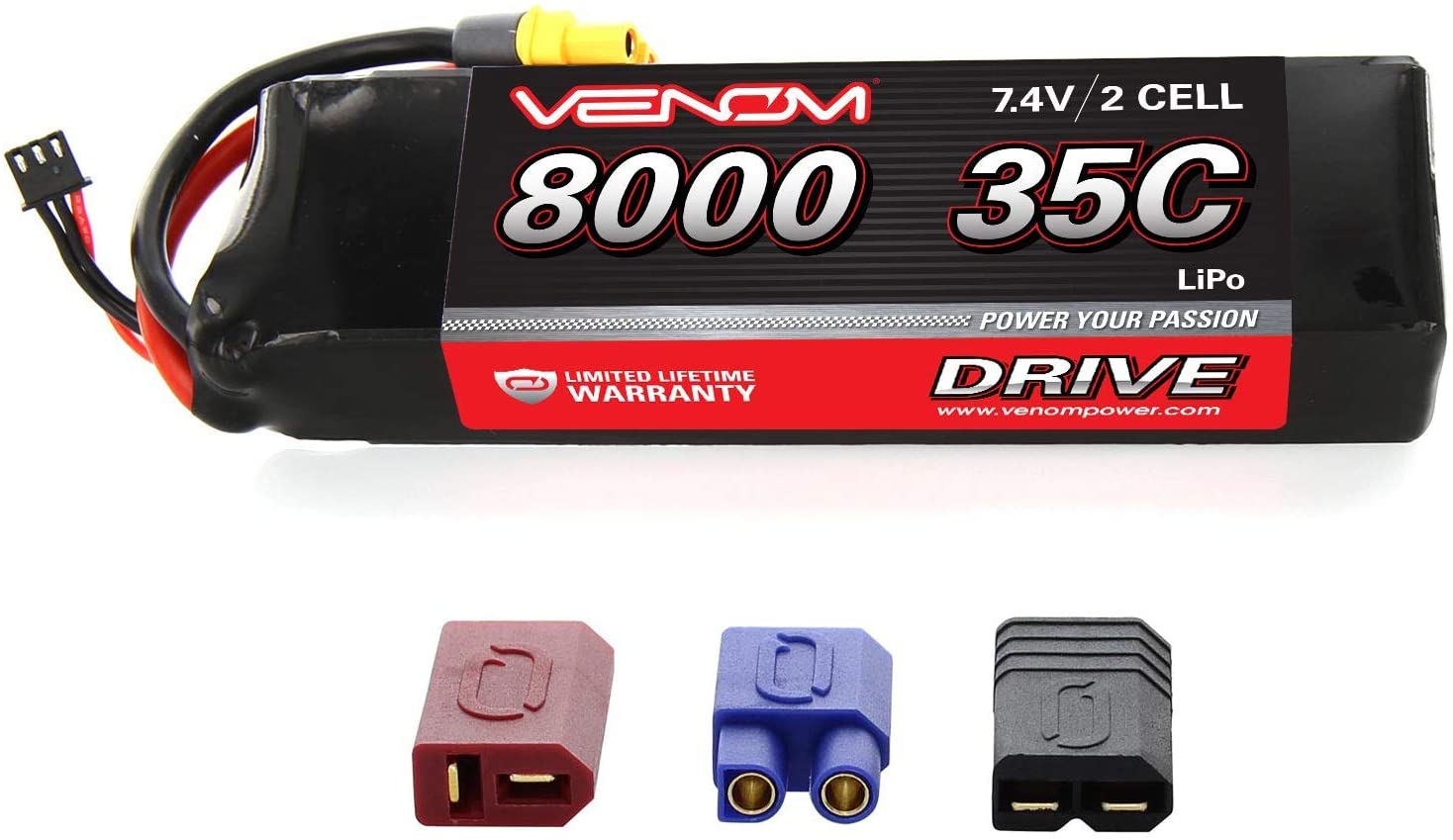 Venom 35C 2S 7.4V 8000mAh LiPo Battery with Universal Plug (EC3/Deans//Tamiya)