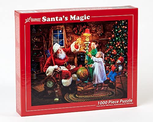 Jigsaw puzzle includes 1000 pieces & measures 30×24 when completed. Fully interlocking and randomly shaped pieces. Produced on thick, premium quality puzzle board. Precision cutting with minimal dust. Made with recycled materials. Santa shares his magic with the children in this gorgeous Christmas puzzle.