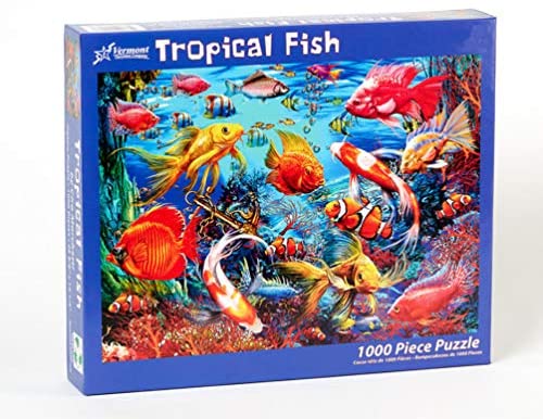 Jigsaw puzzle includes 1000 pieces & measures 26 5/8 x 19 1/4 when completed. Fully interlocking and randomly shaped pieces. Produced on thick, premium quality puzzle board. Precision cutting with minimal dust. Made with recycled materials. How many different fish can you spot in this colorful jigsaw puzzle.