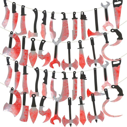 Package Detail: You will get 40Pcs bloody weapons garland banner, 20 different style, 2Pcs/each style, and come with a 16m/17.5yard hemp rope, you …