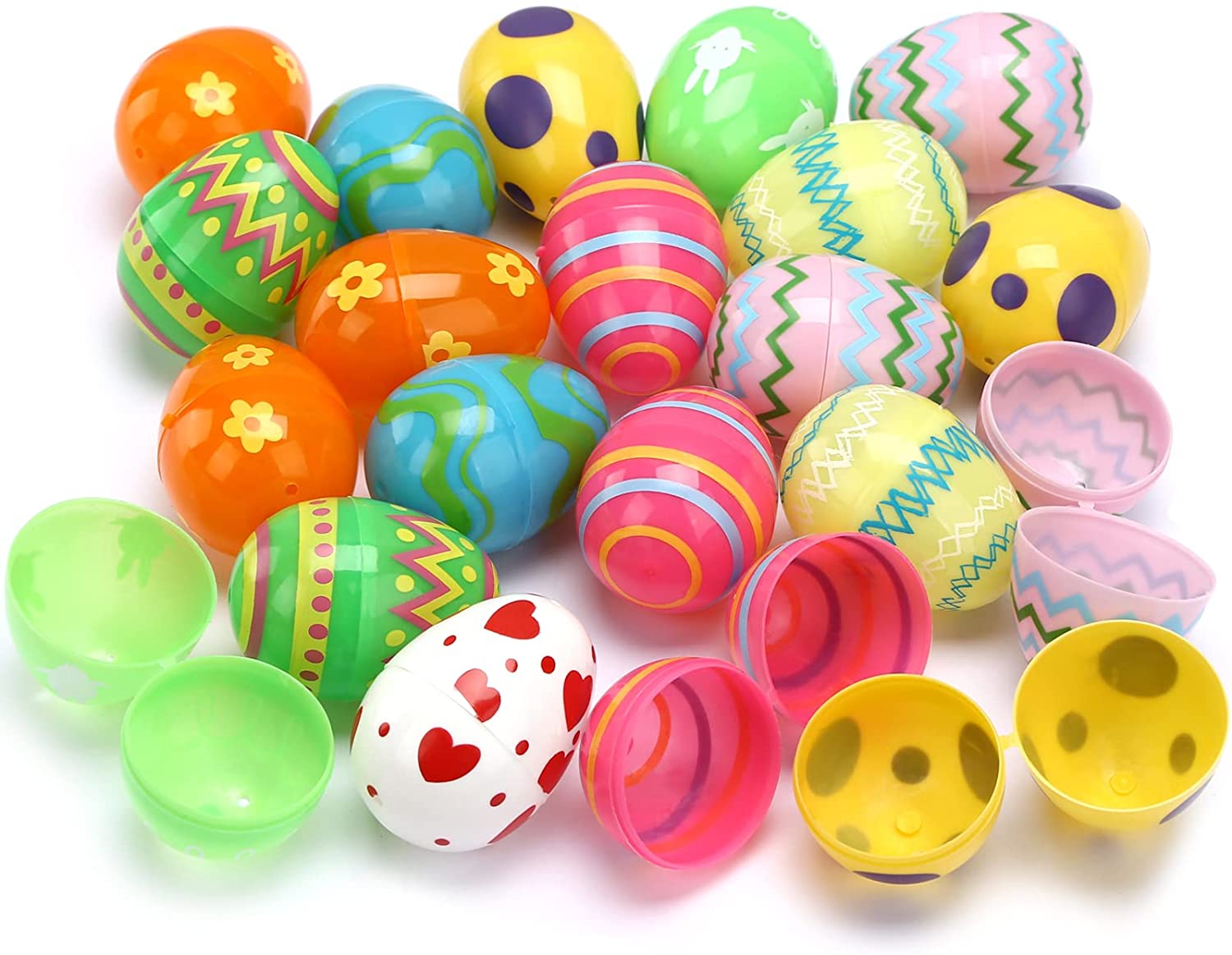 VGOODALL 36 Pcs Easter Printed Plastic Eggs, Easter Hanging Eggs For Easter Egg Hunt Event, Easter Basket Stuffers, Party Favor Goodie Bags