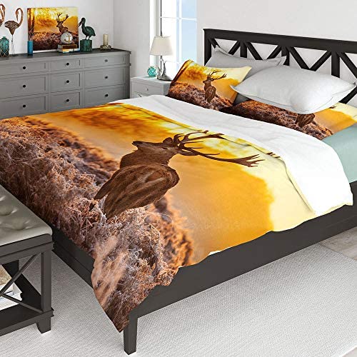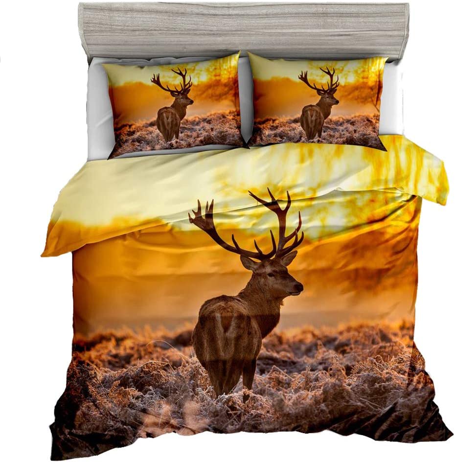 Vichonne Antler Bedding Sets Full Size,3 Piece Peachful Sunset Wildlife Deer Duvet Cover Sets with Pillowcases for Teens Boys Girls Bedroom,No Comforter