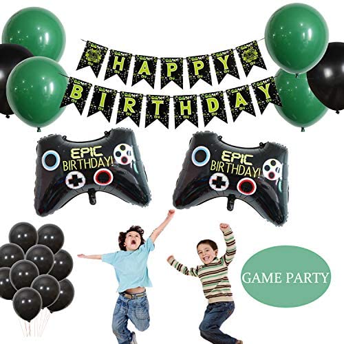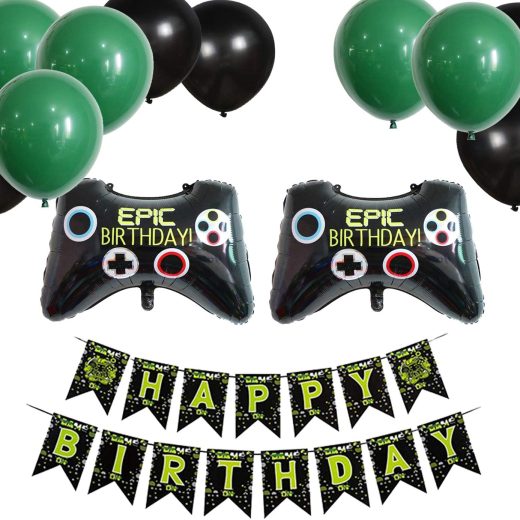 Package Include: you will get 2 pcs Video Game Controller Balloons, 1 set video birthday banner, 5 pcs green balloons, 5 pcs black balloons, which …