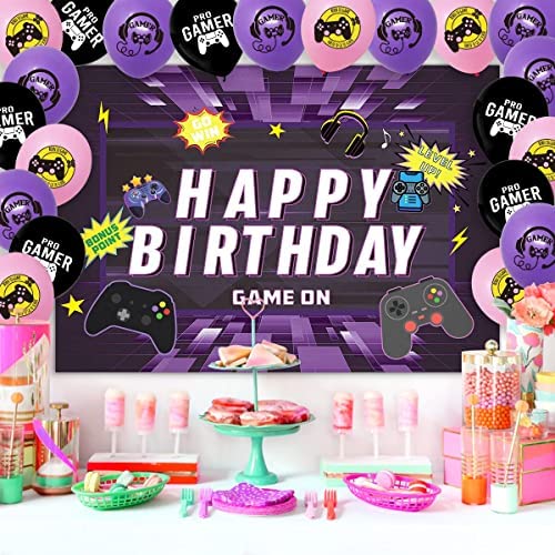 Video Game Birthday Party Decorations, Game On Birthday Party Supplies for Boys and Girls, Purlpe Gaming Themed Party Supplies, 52 Piece Gamer Birthday Decorations for Game Fans