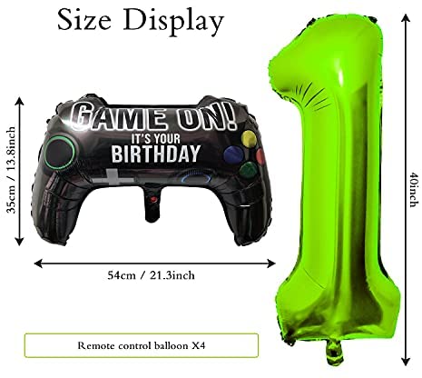 You will get 4 pcs Black GAME ON print controller balloons, giant green number 12 balloon .The color combination is awesome for video game party de…