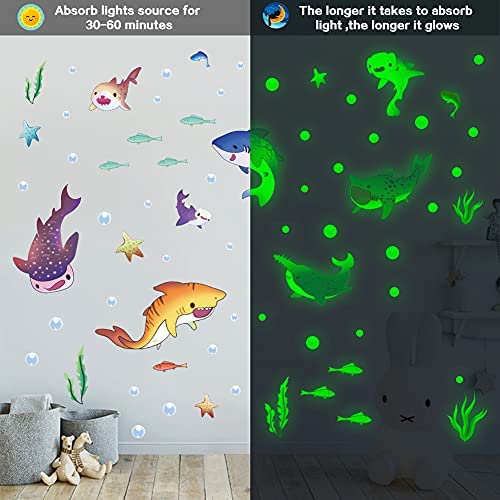 VIMOO Glow in The Dark Shark Wall Stickers Ocean World Luminous Ceiling Decor Decals for Kids Boys Room Nursery Shark