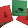 Vintage Red Truck Plaid Christmas Tree Holiday Party Beverage Napkins (24 Set)