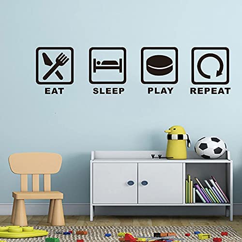 Vinyl Sports Wall Sticker Eat Sleep Play Hockey Repeat Wall Decal Removable Kids Room Decoration Wall Sticker for Boys Bedroom (TM-9 Hockey)