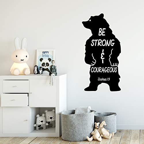 Our high quality inspirational vinyl decal design Be Strong And Courageous – Joshua 1:9 adhesive design comes in 40 inches by 22 inches. The pictures are for display and inspiration only. All of our vinyl wall decals are manufactured with premium industrial grade Lutema self-adhesive vinyls. Our removable peel and stick decal quotes, sayings, and designs are a perfect way to make a statement without having to break the bank. This one is great for your baby room, kids bedroom or nursery. Get an inspirational decal quote. It can be applied to all clean smooth surfaces including interior walls, doors, windows, mirrors, cupboards, stairs, glass, laptops, luggage, car windshields and bumpers, thermos, coffee mugs and school binders depending on the size. This peel-off vinyl decal is easy to remove with no residue left behind. Includes easy step-by-step instructions on how to effortlessly apply it. Our self-adhesive, non-toxic stickers are waterproof, durable and will last for years without peeling, wrinkling or fading. In general, vinyl lettering is one of the latest and greatest trends in modern decoration. Because our products are high quality, they give the illusion of painted wall art without the mess, cost, or time. What are you waiting for Lets get crafty!