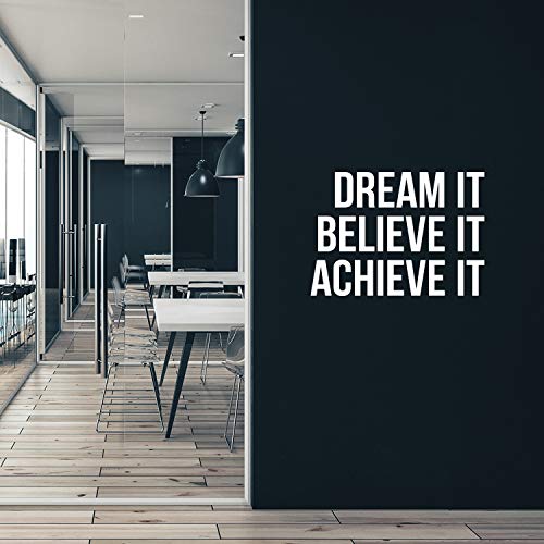 ? Our high-quality vinyl adhesive decal quote Dream It. Believe It. Achieve It comes in 25 inches by 35 inches. The pictures are for display and in…